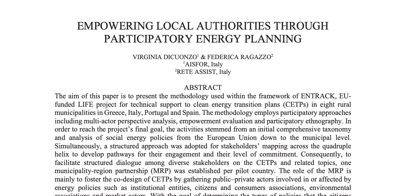 New Scientific Paper from the ENTRACK Project – “Empowering Local Authorities Through Participatory Energy Planning”
